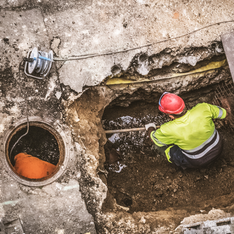 - Unrecognizable workers repairing the sewage system in the street